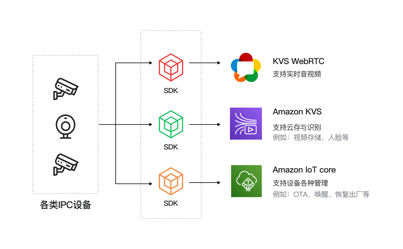 支持家用摄像头、可视门锁、可视门铃、视觉扫地机器人、可视智能音箱、智能视觉冰箱、可视宠物喂食器等可视设备。